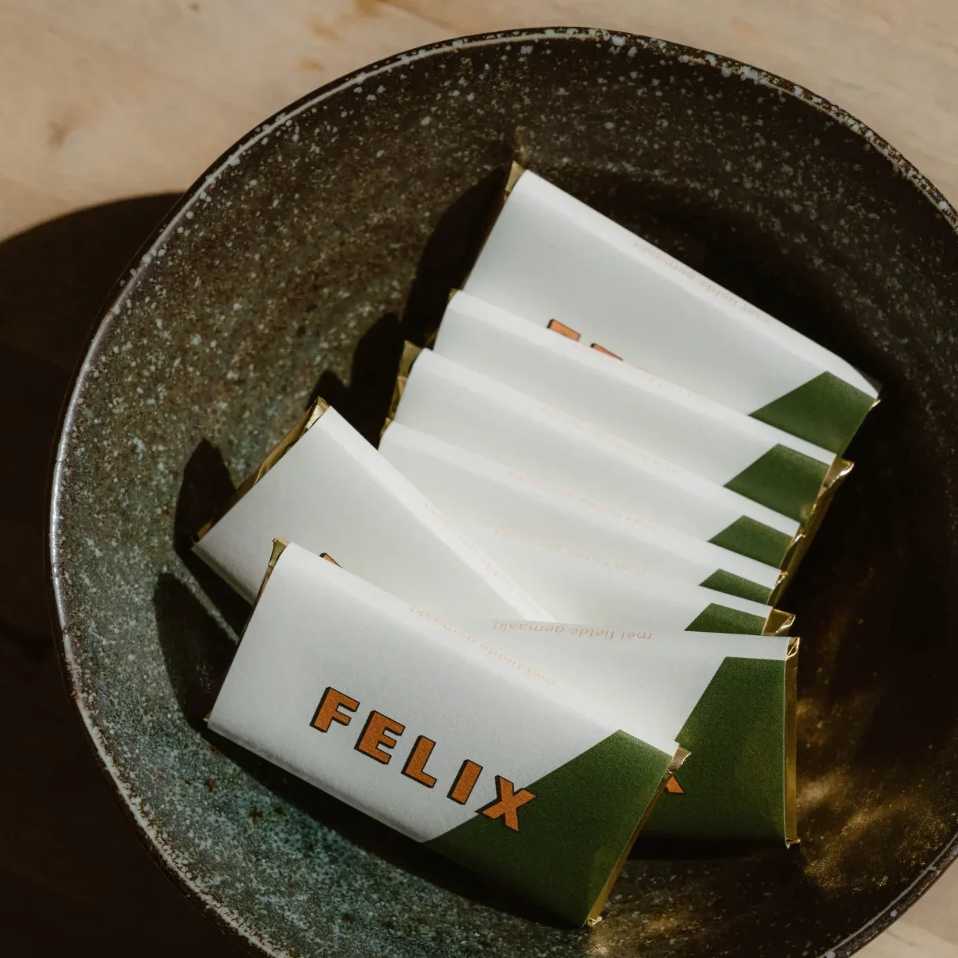 Our chocolate can be personalised in any way you like. Think: delicious bars in a custom wrapper. For companies, adding a logo makes the perfect business gift. What about a few thoughtful words for newlyweds? Or, when a new, tiny human comes into this world, their name can grace the wrapper. We're happy to tailor our bars to your occasion.